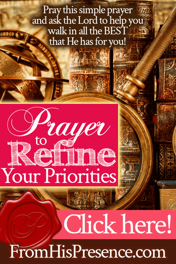 Does this word encourage your heart today? Do you need to refine your priorities, and did you ask the Lord to help you refine your priorities using this short sample prayer? If so, leave a comment below, and we will also agree with you in prayer!